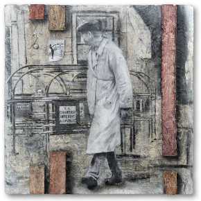 ... Ralf Walraffs jüngste Arbeiten street notes sind Vexierbilder, monochrome Miniaturen, deren spröde Struktur Zerbrechlichkeit und Vergänglichkeit widerspiegeln. Angeregt durch verwitterte Fassaden, auf denen Spuren von Wort- und Bildfetzen alter Plakate noch zu erahnen waren, komponiert er jetzt Straßenszenen mittels Fotografie, Zeichnung und Malerei und lässt diese assoziativ zu neuen Motiven verschmelzen. Mit subtilem Humor blickt er auf Alltägliches; so vermag der Betrachter Vertrautes und Irritierendes zu entdecken.